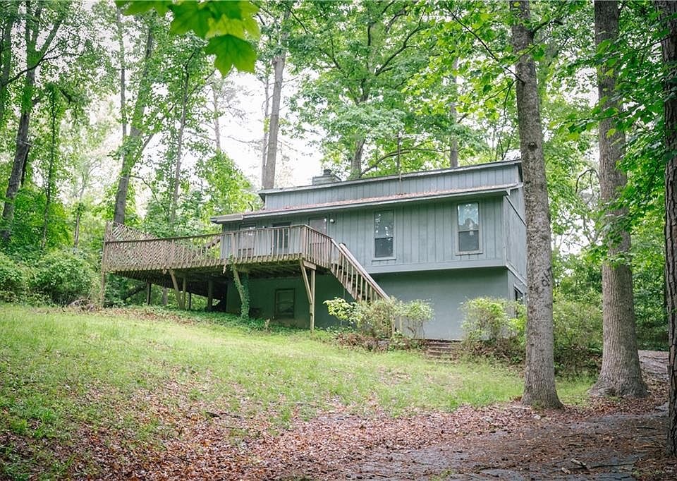Calling all investors and those looking for a home improvement opportunity! This home sits on almost a half-acre lot and offers seasonal views of Lake Lanier across the street. The elevated lot brings privacy and is perfect for entertainment. A wrap-around deck offers peaceful views of the wooded lot and lake. The main level of the home boasts a large family room with a fireplace, kitchen, hardwood floors, two bedrooms (including the master), and a full bathroom. The basement is perfect for another family member with a bedroom, full bathroom, and a large living room. A one-car garage finishes off the lower level. There is no HOA. The property will be sold AS IS and thus is ready for a makeover opportunity.