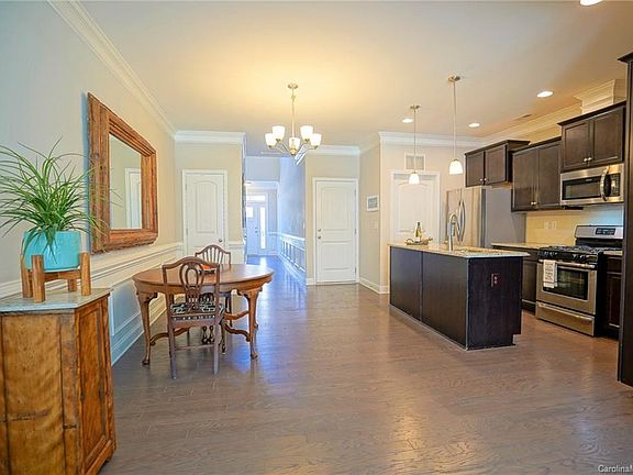 Welcome Home to Daily Lake Views from 4 rooms of your townhouse. Walk to the Lake from your back door! Move in ready 3 BD/2.5 BA + Bonus at Vineyards on Lake Wylie delivers a desirable lifestyle /amenities package you have dreamed about! Vaulted ceiling entry and dark hardwoods, flow into 9-foot ceilings. Crown/chair/picture molding throughout hallway & Great Room. Kitchen/Dining area, granite countertops, tiled backsplash, SS appliances, gas stove, ample cabinets pantry/storage. Cozy gas log fireplace with access to back patio lake views. 1st Floor Master has tray ceilings, extended double vanity w/ granite, glass shower & garden tub. 2nd FL: Spacious Bonus Rm and 2nd floor Master both w/ lake views. 3rd Bed/office with balcony/patio view of neighborhood. All BR's have huge WIC's. HOA/Amenities: A mile of waterfront trails, boardwalk, boat launch/slips/storage; kayak/canoe racks. 2 Saltwater Pools, Waterslide, Tennis/Bocce/Soccer, Fitness Ctr Playground, Clubhouse, Lawn/Trash
