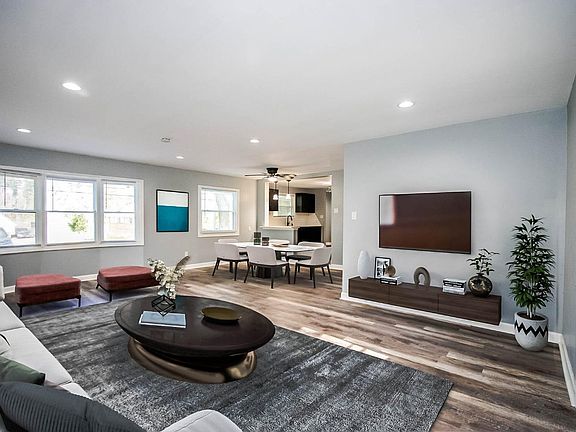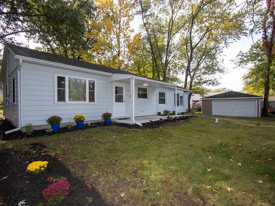 Nicely upgraded move-in ready ranch with detached 2 car garage. This home includes a 14 month home warranty. Just blocks away from Beverly Shores, and beach access. Home has been fully remodeled, and freshly landscaped. Features large bedrooms, and grey vinyl plank flooring throughout. Spacious kitchen with modern fixtures, tile backsplash, and quartz countertops. Ceiling fan lights in all rooms, central air. Includes 2 lots totaling just over 1/3 acre combined. Nice stainless steel appliances, and washer/dryer combo included. Close to the Beverly Shores train station for easy commuting to Chicago. Home photos show virtual staging ideas. Don't miss out, schedule your showing today!