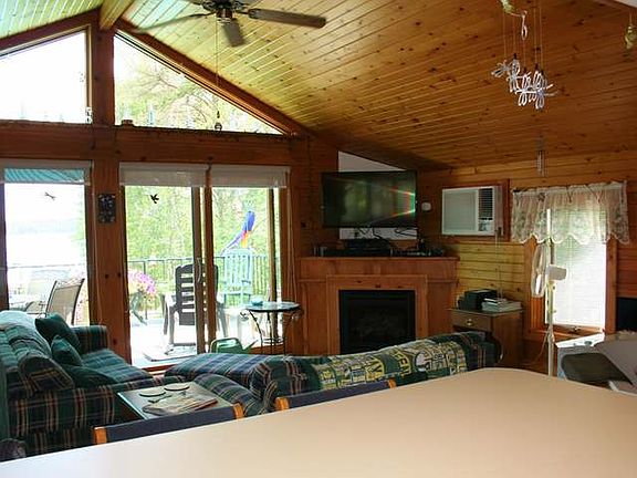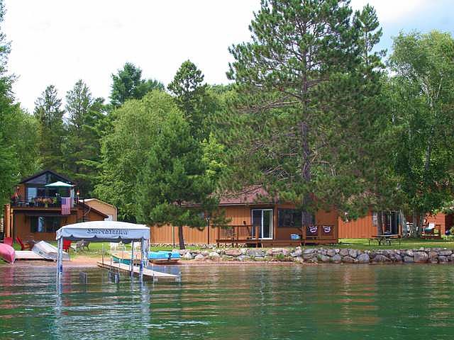 A unique opportunity on beautiful Stormy Lake. The property consists of 2 well maintained seasonal cottages at the water's edge with a year round loft apartment over the garage, plus a detached garage. The 1.78 acre lot is very level and features a sandy swimming beach along the 140' of east facing frontage where you'll love the morning sunrises over the lake. The year round living quarters offer a lovely knotty pine great room with vaulted ceiling, cozy fireplace, wirlpool tub, kitchen with breakfast bar, full bathrm, and lg patio doors leading out to the lake side balcony. There is a main level lake side master bedroom, main level laundry and a full bath. The 3 bdrm cottage has a large great room, deck and fantastic views. The 2 bdrm cottage has a cozy interior, also with a nice deck. Nicely updated and well maintained! Plus there is a large detached garage to store all your northwoods toys. Stormy Lk is known for its clear water, great fishing and fun recreation.
