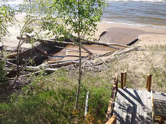 LAKE SUPERIOR 175' of SANDY SHORE..IDYLLIC CHARMING LOG COTTAGE, just as cozy as can be......the main floor has the entry room, use to be defined by your purpose, then into the kitchen and living areas. There is a partially finished attic area that the kids will favor, with sleeping space possible.. .........the below grade level has been renovated to include a very nice full bathroom complete with shower and jetted tub, laundry room and bedroom. The stairway to the beautiful beach makes it easily accessible. This is a beautiful beach setting for your leisure and retirement times............sellers will consider terms....