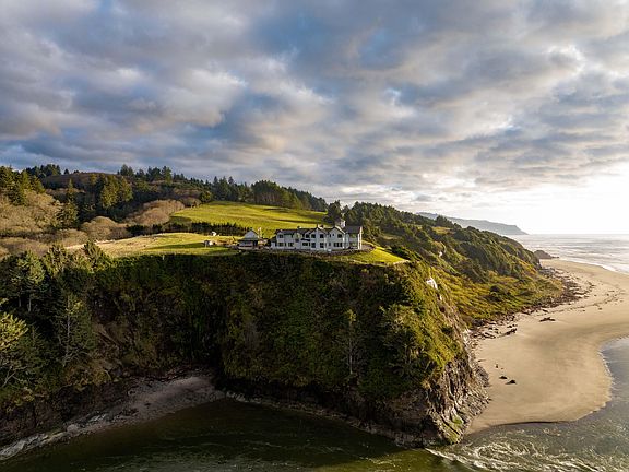 Auction: list price is bidding start price and may differ from seller's reserve. AUCTION BIDDING OPEN: Bidding ends May 16th. Previously Listed $10M. Current High Bid $3.4M. No Reserve. Showings Daily By Appt. - Ocean and river views as far as the eye can see beckon from the Central Oregon Coast. Enjoy a private oasis surrounded by windswept grasses, rocky beaches, and unobstructed views of sea stacks rising from the ocean. Nearly every interior wall offers abundant windows that frame those same views for the ultimate coastal sanctuary. The most memorable and unique place to take in the incredible scenery is the viewing room at the top of a grand circular staircase lined with mahogany. With plenty of space for family and friends, including a fisherman's cottage with private river access and a separate guest house, this will be your favorite place to marvel at the wonder of nature amongst the people you love.