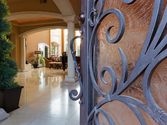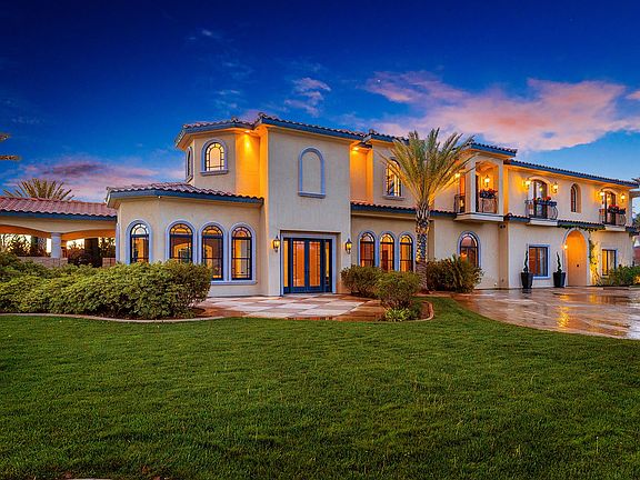 Immaculate West-facing Tuscan inspired estate nestled behind the gates of the prestigious Los Hermanos tract. This stunning architecturally designed home has everything you need to create extraordinary memories! A truly magnificent residence! It boasts comfort and luxury from every room! As you enter this exquisite home through the massive iron doors, you are met with the artisan designed grand living area that is brightened by custom designed chandeliers by the world-famous Charles Marder. Gorgeous marble flooring running throughout the ground of this radiant home also features Viking appliances in the kitchen, a private home theater with a 110" HD Projection System & a state of the art THX Lucas Film Surround Sound, a Vegas-Style Casino w/slot machines from the Bellagio, Mirage and Caesars Palace. The eloquently designed master retreat offers a spacious sitting area, a cozy fireplace, a private veranda, two generous walk-in closets and a ensuite bathroom that has separate vanities, an inviting spa-tub and an enormous walk-through shower with numerous shower heads. Brilliant outdoor features include a true entertainer's paradise with a custom-designed pool and spas with elegant water-features and fountains, an extravagant fireplace, a substantial outdoor kitchen with a Master Chef Pro Viking BBQ and searing station, along with a Viking refrigerator & commercial grade ice-maker, & a sophisticated covered patio perfect for evening celebrations. Welcome to your grand oasis!