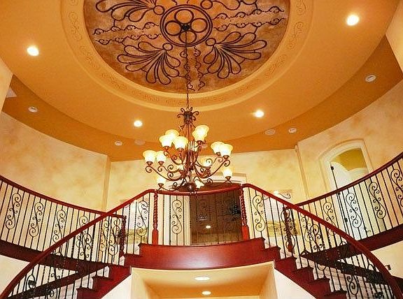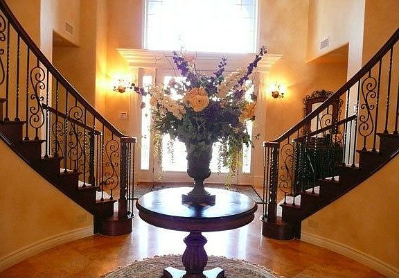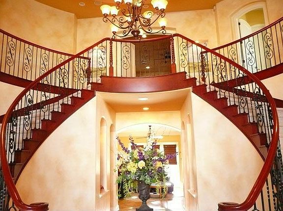 A majestic custom home in prestigious gate Los Hermanos. Class & meticulousness is evident from the striking leaded glass entry doors thru the resort style yard. Hand crafted double curved wood/wrought iron stairway and massive chandelier w/ hand painted ceiling creates a dramatic, elegant entry that sets the tone for this home. The living room is made to entertain with a wet bar, wine cabinets, classic fireplace and rich wood floor. Formal dining room with lovely backlit ceiling detail. Family room adjacent to kitchen and also a game room with built-in entertainment center and restroom that serves the pool users too. Kitchen is a cooks dream with gorgeous granite, stainless appliances including built-in refrigerator/freezer, butler's pantry, bay windows, nook and large breakfast bar. Master suite has sitting area w/ fireplace. Each bedroom has private bath. Back yard is like a resort w/ custom salt water pool/spa. Rock look waterfall, slide, swim up bar, covered patios, BBQ,
