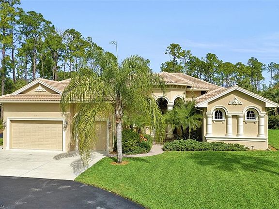 This delightfully unique Collier Woods residence consists of a 3,700+ sq. ft. main house, 1,000+ sq. ft. guest house and 2,400 metal pole barn. The main house, custom-built by Gulfstream Homes, features four bedrooms plus den, a home theatre room that could be easily converted into a fifth bedroom if need be. Features include Travertine floors, tray ceilings, gourmet kitchen with double oven, TWO DISHWASHERS, a luxurious master suite, custom free form pool and attached three car garage. Hurricane windows and doors, commercial-grade fencing, a commercial-grade gate with electronically controlled operators, new landscaping including a privacy hedge, updated well equipment, an electronically controlled sprinkler system, and a full house generator complete with buried 1000 gallon propane tank were added in 2021. Power and cable lines were buried in 2022. The separate guest house with charming screened lanai and large 425 sq. ft. living room is on separate well and septic and could also serve as a home office, art studio, man cave, etc. At the rear of the property there's a 2,400 sq. ft. metal pole barn with water, 50 amp service and clean-out ideal for your RV, boat storage, horse trailer, etc. The driveway is completely paved all the way to the back of the property with ample guest parking too. All this and more in a delightful park-like setting in a prime close-in location West of 951. Be sure to see the Custom HD Walk-Thru Video Tour!
