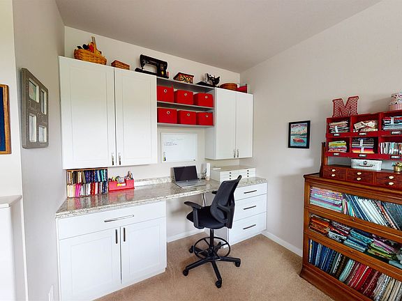 Meticulously maintained 2+ bedroom, 2 bath rambler available in Summersun! Built in 2019 and in better then new condition, this home features engineered hardwood throughout main living space, a large kitchen with granite countertops, tile backsplash and upgraded stainless steel appliances. Cozy gas fireplace in the living room & in the dining room custom install cabinets for all your entertaining needs. Primary bedroom has exceptionally large walk-in closet and attached 4-piece bath. Along with the other bedroom, the home has an additional den/office space with built in desk & cabinetry. The 3-car garage provides plenty of storage space and the covered back deck is a wonderful retreat. Move in ready, with AC for the summer!