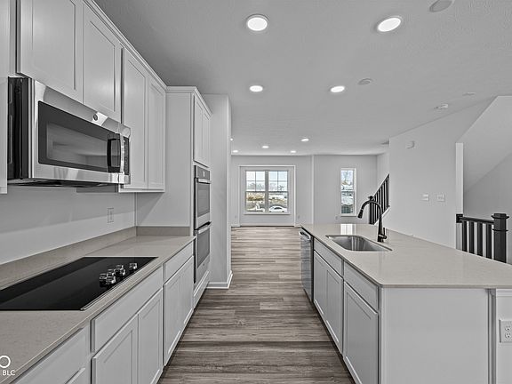 Welcome to this modern 3-story new construction townhome near downtown Westfield. This beautiful home features 3 bedrooms and 3.5 bathrooms, providing ample space and comfort for you and your family. The open floorplan design creates a seamless flow throughout the living spaces, making it perfect for both relaxing evenings and entertaining guests. The kitchen is a true highlight, featuring a spacious layout with a central island that offers both functionality and style. Whether you love to cook or simply enjoy gathering around the kitchen, this space is sure to meet all your needs. The owner's bedroom includes an en-suite bathroom, providing added privacy and convenience. The loft near the 2nd bedroom offers endless possibilities. The lower level has a guest suite with full bath and walk in closet. Bonterra has direct access to Midland Trace Trail that connects to Monon Trail. Walk or bike to charming downtown of Westfield is a breeze. The construction of the "Shops at Bonterra" at the front of the neighborhood is recently completed. There will be coffee shops, restaurants, and many other retails shops in there. Move in to a Boutique townhome, walk to shops and Midland Trace Trail. Experience this amazing lifestyle.