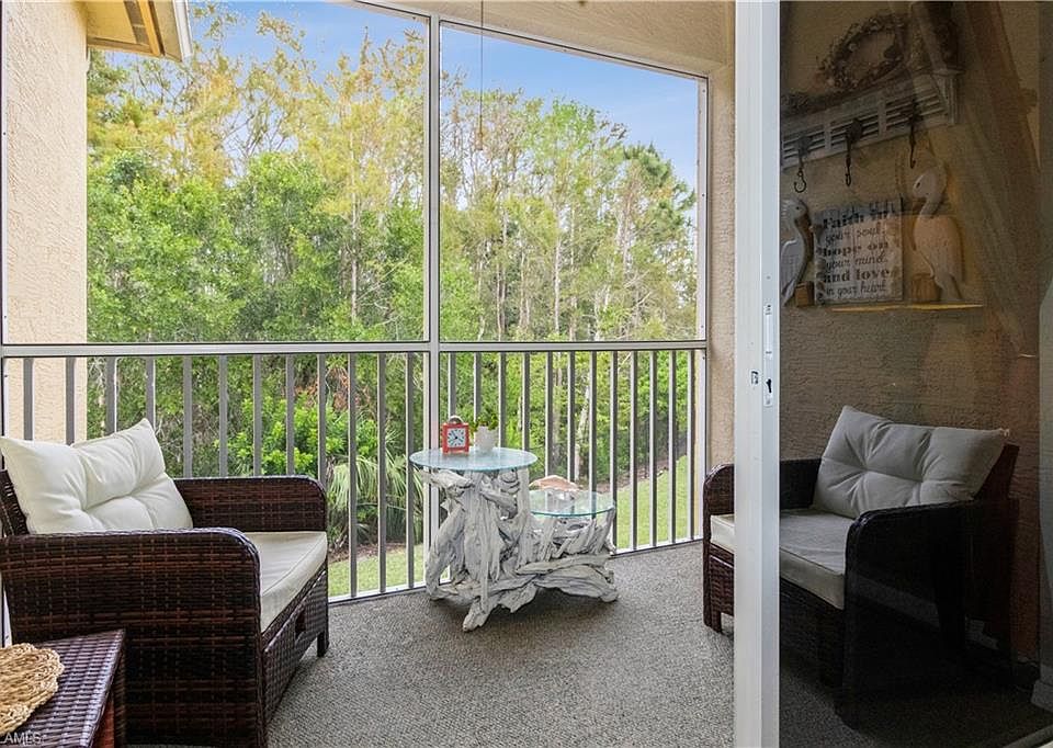 Turnkey 2nd floor unit over looking beautiful preserve. Condo has 3 bedrooms 2 full bath, with everything you need...just bring your personal items. Nice size kitchen with newer stainless steel appliances, plenty of cabinet storage, and counter bar. Stackable washer/dryer. Open family/dining room. Screened in lanai to enjoy our SWFL weather. Two nice size bedrooms share a full bath with tub/shower combo. Main bedroom has ensuite bath, walk-in closet, walk-in shower. Community is gated, with clubhouse, exercise room, pool/spa. Close to shopping, SWFL airport, beaches & restaurants.