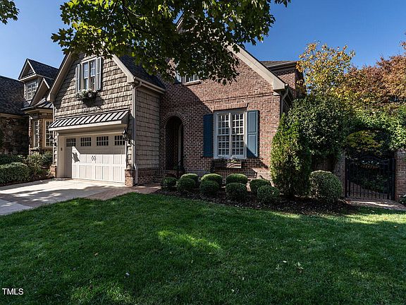 This might be the most beautiful townhome you have ever seen! Nestled in the heart of Glenlake South, this end unit home catches your eye with oversized tumbled brick with shake accents and carriage house style garage doors. Walk in the distinctive front door and you are greeted with a home of exquisite quality and detail including 10' ceilings on the first floor, extensive mouldings and more. The dining room is incredible with custom floor to ceiling bookshelves. The gourmet style, eat-in kitchen has an oversized island, gas cooktop, built-in SubZero refrigerator and plenty of cabinets. First floor primary bedroom is a wonderful retreat with a view of the private backyard, custom built-ins, unbelievable closet and lovely bath with walk-in shower and jetted spa tub. The inviting living room has a gas fireplace flanked by mirrored cabinetry and French doors that lead to the covered veranda. A striking staircase leads you upstairs to the open family room. Two spacious bedrooms with ensuite baths, generous sized office and flexible bonus room finish off the second floor. Another highlight of the home is the delightful large fenced-in backyard with a brick courtyard with well-established landscaping. Don't miss the rose covered gate with a meandering walkway that leads you to this exceptional outdoor entertaining space. Every detail of this townhome was thoughtfully designed. New roof in 2021. The location is ideal with shops, restaurants and parks just minutes away.