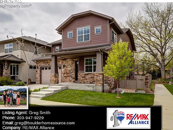 Prime location on corner lot in sought-after contemporary neighborhood. Fully fenced back yard with 2 patios great for outdoor living. Backs to large mature trees which create privacy. Gorgeous newer tastefully-designed contemporary home offers 10' ceilings & hardwood floors throughout main level. Turn key condition & opportunity! 3beds up all w/vaulted ceilings. Laundry rm conveniently located upstairs. Spacious master includes W facing deck with views, 5 piece bath & huge his & hers closets. Listing Agent: Gregory W Company: RE/MAX Alliance-Boulder Phone: 303-947-9229 Email: greg@boulderhomesource.com