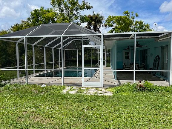 Welcome to your ideal Florida getaway, where every detail is designed to ensure your winter vacation is unforgettable. This charming home features 3 bedrooms, 2 bathrooms, and 1127 sq ft of comfortable living space, complete with a 1-car garage, an inviting in-ground pool, and a boat dock with 80 feet of canal frontage leading directly to the Gulf of Mexico. The interior is warm and welcoming just pack your clothes and toothbrush! Outdoors, you'll be enchanted by the spacious lanai perfect for hosting friends, while the stunning pool offers a serene view of the waterway. The expansive yard is perfect for outdoor fun, whether it's a corn hole tournament or a relaxing fishing session from the dock on a lazy Saturday afternoon.