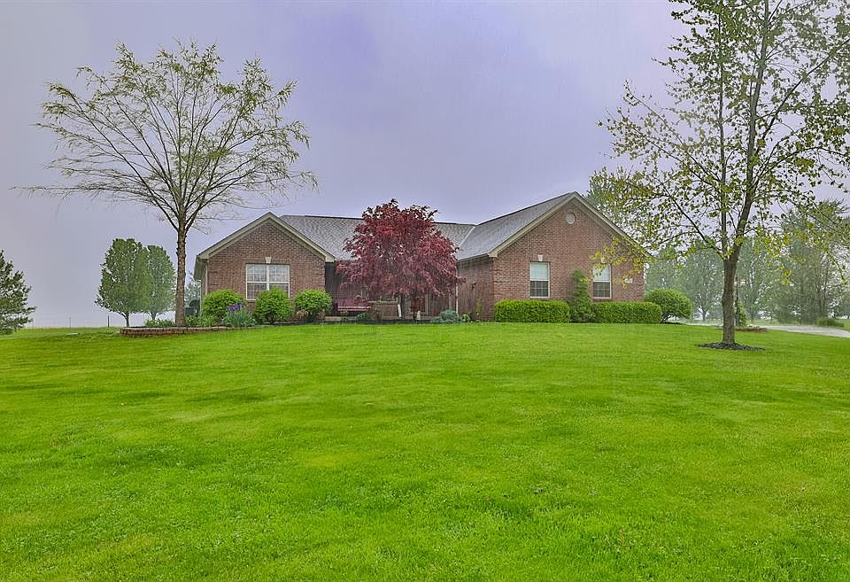 Custom built, full brick, ranch home in upscale dvlpmt. Living room with vaulted ceilings. Open kitchen with island. 3 large bedrooms on first floor. Master bdrm with walkout and en-suite. Finished lower level with wet bar, family room, rec area, bedroom, study and full bath. 9 ft ceilings throughout. Inground pool. Covered patio. Side entry garage.