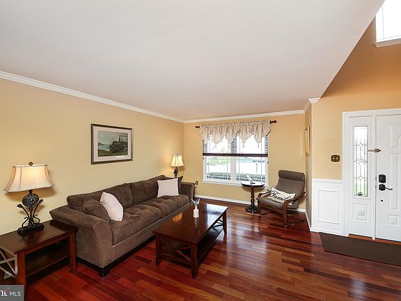 Welcome to this beautifully maintained, 4-bedroom corner property in Buckingham Square. This solely owned home offers thoughtful updates, quality craftsmanship, and a layout designed for both comfortable living and entertaining. The first floor features rich Brazilian Cherry hardwood floors throughout. The bright and airy living room and formal dining room, accented with classic wainscoting, create an inviting atmosphere for gatherings. The family room is warm and welcoming with a fireplace, perfect for cozy evenings. The kitchen has been upgraded with granite countertops, a center island, a tile backsplash, and tile flooring, and it flows seamlessly to the outdoors through a Pella sliding door, leading to a composite deck (2022), a stone patio, and the beautifully upgraded inground pool (2021). A conveniently located powder room, also updated with tile flooring, completes the first floor. Upstairs, the primary suite offers a serene retreat with a vaulted ceiling, sitting area, two closets, and an en suite bathroom with soaking tub and stall shower. Three generously sized bedrooms share an updated hall bath, rounding out the second floor is a laundry closet making daily routines easier. The finished basement adds versatile space ideal for a recreation room, home office, or gym, along with additional storage. Throughout the home, all windows have been replaced with energy-efficient ProVia Aspect Series windows (2022), ensuring comfort and efficiency. The home's curb appeal is enhanced with a newer front door and meticulous landscaping. A two-car garage completes the picture of easy, elegant living. This is a rare opportunity to own a move-in-ready home with a long history of pride in ownership, thoughtful upgrades, and a fantastic location.
