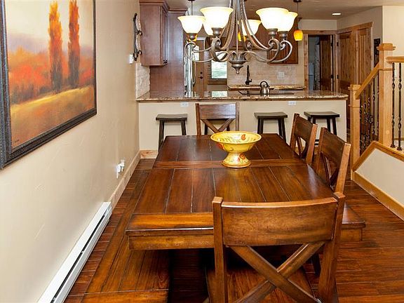 Newly remodeled two-story condo in beautiful East Vail. Completely renovated in 2008 with hand-scraped hardwood floors, Lennox wood burning fireplace, washer/ dryer in unit, alder doors and trim and Jacuzzi tub. New kitchen includes high-end stainless steel appliances, granite slab counters and top of the line cabinets. New roof installed in 2010 and full exterior renovation completed in 2012, including new siding, stucco, insulation and windows. Perfect for weekend getaways or full-time use.