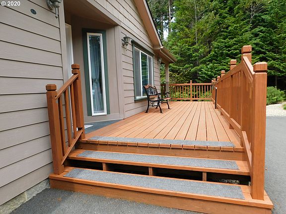 DESIRABLE CEDAR TERRACE HOME. Located in the hills above Port Orford and out of the tsunami zone is this immaculate 2 bedroom, 2 bath home with dining/office area. 2 skylights and a solar tube add extra light. Paved driveway with room for RV. Home has a developed surface water spring with a UV & double filtration system. 1550 gal. holding tank. Year round creek. Very lovely landscaping. Quiet & private forest setting with plenty of wind protection. Most furnishings can be included in sale.