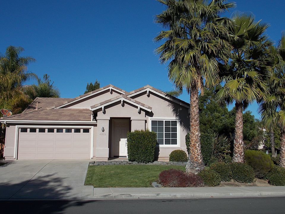 Welcome home to 41922 Pacific Grove! ***PAID OFF SOLAR!*** This remodeled single story home sits on a corner lot in the golf course community of Temeku Hills. As you enter the home into the formal living and dining room, you are greeted with lots of natural light, newer wood-like flooring and neutral paint throughout. The kitchen boasts dark quartz counters, a center island with bar seating, newer stainless-steel appliances, and custom painted cabinets with lots of storage. Open to the kitchen is the family room which is appointed with a beautiful floor to ceiling stacked stone fireplace, custom built-in shelving, and a custom dry bar with built-in wine storage. Stepping out through the glass door into the backyard, you will find a low maintenance patio with stone-like stamped concrete, landscaped planters, plenty of space for seating, and a grassy side yard. Back inside, the hallway has custom white cabinets and floating shelves, a remodeled full bathroom, and the laundry room. The Master Bedroom features custom paint, neutral carpet, big windows, and an ensuite bathroom with separate tub and shower, a double sink vanity, and a large walk-in closet. The generous secondary bedroom has neutral paint and carpet,& a walk-in closet. This home is energy efficient with 11 Sunmode Plus 270watt solar panels, leaving sellers without an electric bill all year! Temeku Hills has lots of amenities, and is centrally located, making it about 10 minutes to everything Temecula has to offer!