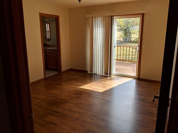 Quiet country living on large parcel. House is on one acre and that is part of big acreage holding. Fenced yard and wrap around deck. Wood floors. Ranch house. Giant garage. Also shed for boat or other vehicles. Dead end quiet road. Master bedroom has own bath and access to deck directly from bedroom. Big walk in closet too. Gas fireplace, storage attic, gas range, and other livable amenities. Close to very nice county park for picnics, fun, fishing and recreation. Tenant pays utilities and yard care