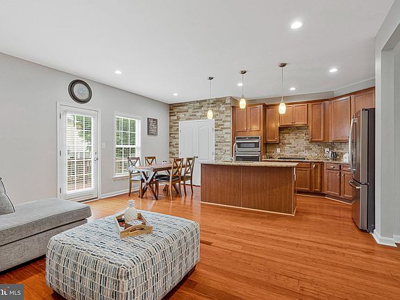 Welcome to this stunning townhouse in the sought-after Stoneridge community, offering spacious living, modern upgrades, and an unbeatable location. The main level features beautiful hardwood flooring throughout, a bright family room with recessed lighting, a formal dining area, and a convenient half bath. The kitchen is a true showstopper—featuring granite countertops, a stone backsplash accent wall, and all appliances replaced in 2021, including a cooktop, wall oven, refrigerator, and new dishwasher. Additional recessed lighting and a casual lounge area across from the kitchen create the perfect flow for everyday living or entertaining. Step right out onto the deck, ideal for relaxing or dining outdoors. Upstairs, you'll find new carpet, a spacious owner's suite with vaulted ceilings, three walk-in closets, and an ensuite bath with a stand-in shower. Two more generously sized bedrooms share a full hallway bath, offering comfort and privacy for all. The walkout lower level is beautifully finished with LVP flooring(installed last fall) and includes a large recreation room, an upgraded full bathroom with a stand-in shower, and a laundry area. The fenced backyard features a brick patio, perfect for outdoor gatherings or peaceful evenings at home. Centrally located just minutes from shopping, dining, top-rated schools, hospitals, and major commuter routes, this turnkey home has it all. Schedule your showing today and fall in love with everything this home has to offer! Accepting Back up Offers