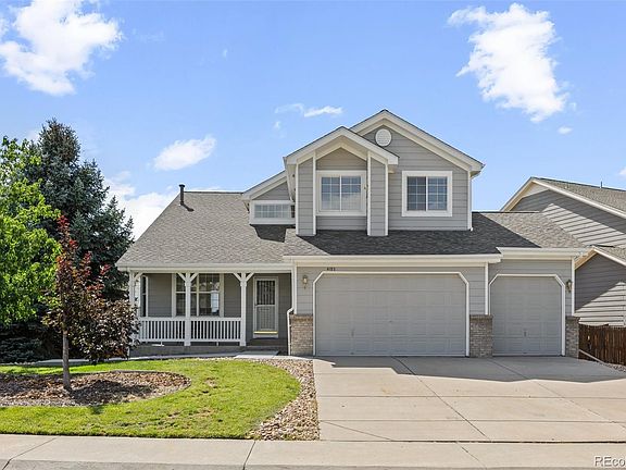 Enjoy the perfect blend of convenience and serenity with this home's fantastic location, offering easy access to I-25 while maintaining impressive panoramic mountain views! Welcome home to this beautiful two-story style home, featuring a functional and easy-to-navigate layout with a finished walk out basement. This charming property offers a blend of upgrades and cozy living spaces, perfect for families and entertainers alike. Enjoy fresh paint and new carpet throughout the home creating a blank canvas ready for your personal touches . The upper floor boasts three spacious bedrooms, a loft (potential 4th bedroom) and two full baths. The main floor hosts a formal living and dining area, kitchen, additional living area, half bath, and laundry/mud room. The fully finished basement provides ample additional living space and storage, including a large open area with a built in entertainment center, versatile office, flex space, or extra bedroom, and an additional bedroom and bath. A built-in bar with full size sink, disposal, mini refrigerator, and dishwasher makes living, relaxing, or entertaining fun and easy. This fully functional lower level could also be a separate living area or "mother-in-law suite". Step outside on your large deck to enjoy the expansive mountain views and breathtaking Colorado sunsets. It's so nice you may want to stay home, but luckily you also have easy access to main roads, Downtown Castle Rock, a highly rated hospital, shopping, restaurants, and hiking trails just minutes away. Don't miss the opportunity to make this charming home your own!
