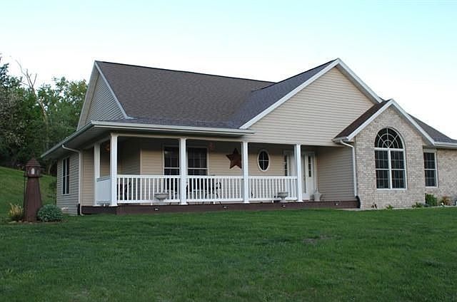 This spectacular peaceful setting overlooking a scenic river valley on the edge of the woods can be your next home. Nearly new contemporary ranch home with many upgrades, including custom cabinets, cathedral ceilings and a gas fireplace. But perhaps your favorite room will be the grand master suite with his and hers walk in closets and jetted tub or shower. Room out back for entertaining friends on the patio and some extra acreage for your family to explore in all seasons.