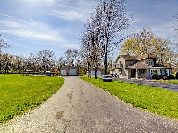 STUNNING Property!! This 3 bed,2 bath home has been lovingly cared for and upgraded to be the perfect family retreat. Dream garage/man cave for the lucky new owners. Huge 49 x 30 outbuilding with extra tall door, BONUS storage & pool party room complete w/bar. POOL PARTY!! Janmaster ''sport addition'' In-ground pool, hot tub, security fenced, gazebo for shade, large concrete pad, gas thermostat heat and complete with a perimeter drain & sump system to make sure drainage is never an issue. Situated on 1.36 acres with gorgeous landscaping, circle drive. Upper level offers two additional guest rooms (one with private balcony) family room & newly remodeled full bath. Convenient laundry, home office, hardwood floors, stainless kitchen appliances, SUPER renovated luxury bathroom w/ heated tile floor and the stamped concrete patio off main floor master suite are just a few things to mention. Come fall in love with these beautiful country views.