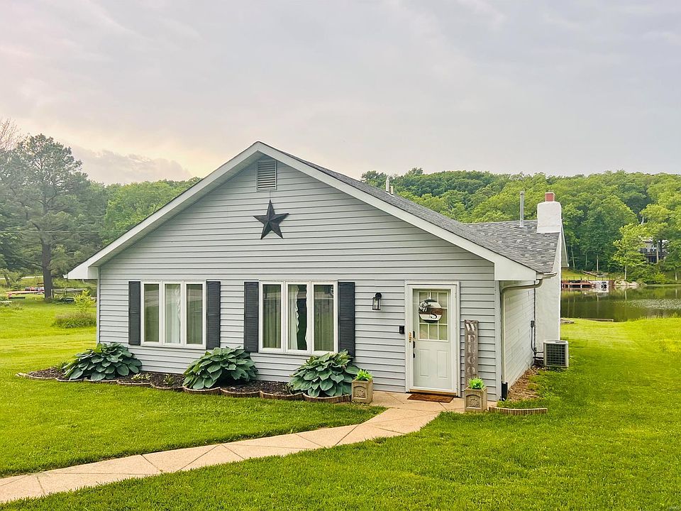 Lake living at its BEST! Welcome home to your new lake front retreat! The cozy home offers neutral finishes throughout. A spacious family room is accessible to the front bedroom (with an ensuite bath and walk-in closet!). In the main hall is the laundry room and a deep pantry. The kitchen has a great flow for prepping meals and entertaining guests; the island offers even more storage & work space! Off the kitchen is the hall bathroom, closet, and two additional bedrooms. Check out the lake view from the dining room! The back door leads to a sun room, perfect for extra storage or additional living space. Head out the back door and you'll find the back deck w/amazing views of the lake. The flat yard leads to your private dock with a bench and a ladder: fishing, swimming, boating! All the lake things! The shed in the back yard offers even more storage. New furnace! New vapor barrier! Newer water heater! The empty lot to the left of home is common ground & does NOT belong to this listing. Additional Rooms: Sun Room