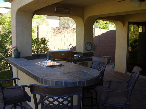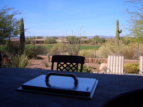 NOT a short sale or lender owned! This is a GREAT home, ready to move in.... on an INCREDIBLE elevated, mountain, sunset and golf view lot!!! All the right interior upgrades in immaculate condition. New stainless appliances, new paint and beautiful furnishings available as ''turn key'' opportunity. The backyard ''outdoor living space'' is second to none. It features expanded covered patio, gourmet built-in kitchen including island, grill, fridge, heater and all the comforts of resort living!!