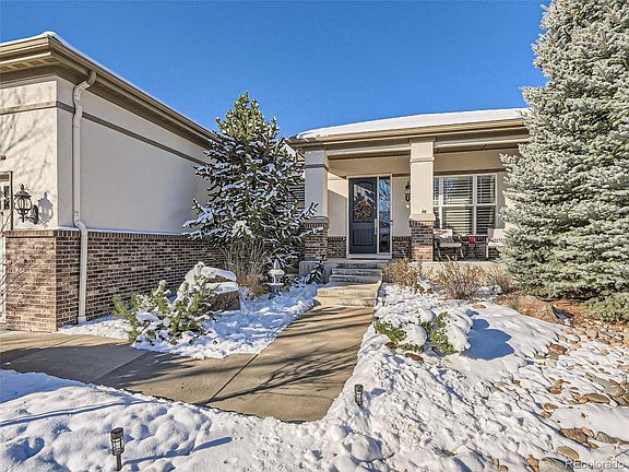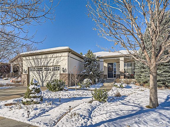 DO NOT CONTACT SELLERS. Come see this one of a kind Steamboat Model home in the highly sought after Anthem Ranch Neighborhood. All main floor living on a quiet street within walking distance of the Aspen Lodge. This home boasts extended gleaming hardwood floors, extra large covered and screened in deck, upgraded professional landscaping with mature trees for privacy and 3 full conforming bedrooms. With over 2050 sq feet finished, this home has many private rooms. A separate office with newer carpeting, 3 full bedrooms with a full bath, formal dining room, eat in kitchen and eat in breakfast bar. The primary bedroom has a tray ceiling and bay window and sitting area. A large family room with a cozy gas fireplace, and a large primary bedroom with 5 piece bath and extra linen closet. The spacious kitchen has double rollouts, maple cabinets with handles and gorgeous backsplash and upgraded lighting. Stainless steel appliances and some new ones, a large laundry room with lower and upper cabinets with rollouts, a laundry sink and washer/dryer included. The garage has built in cabinets and workbench and is taped, textured, painted and finished inside the garage. Enjoy the Aspen Lodge Rec Center with over 130 clubs, indoor/outdoor pool and hot tubs, indoor walking track, fitness class room, full fitness center and classes. A large room with a cozy fireplace, free coffee/latte machine, billiard room, craft room, dancing room, library and a lot of outdoor space to enjoy our Colorado summers. Free outdoor concerts, pickleball, tennis and bocce ball included in your HOA dues. Take a free tour anytime. Come see this beautiful home. No pets and immaculate interior.