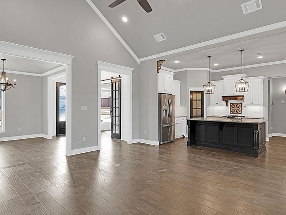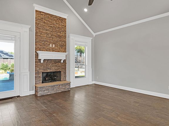 Now and then, a home hits the market that feels "Like New." I would say 4194 Chapel Ridge fits that bill perfectly. Nestled in a vibrant neighborhood free from the constraints of an HOA, this 3 bedroom, 2 bath home complete with a den/man cave room, boasts impressive curb appeal with it's brick veneer and a modern color palate. The inviting entryway opens into a spacious floor plan. The formal dining room, adorned with a wall of windows and custom trim work, flows seamlessly into a generous living room featuring a floor-to-ceiling fireplace and handsome hard wood tile throughout. The full-sized wrap-around kitchen is designed for both cooking and entertaining, offering amble counter space, gas stovetop, stainless steal appliances, and an enormous island with double sided storage and two USB ports. The primary bedroom includes a tray ceiling and ceiling fan, while the primary bath boasts a double vanity, separate shower and tub, and plenty of storage space. The expansive primary closet comes with built-in features. Guest bedrooms are bright, each with ceiling fans and ample closet space. The covered patio is perfect for relaxing, with space for mounted TV, table and chairs. Enjoy a heated gunite saltwater pool and spa that provide a resort-like experience, complemented by a gas fire pit installed in 2021 for year-round outdoor enjoyment. The property also includes exterior portable generator plug and Briggs and Stratton whole-home generator, an in ground subwoofer and patio sound system, and a 30 AMP connection ready for a shop. The security system and equipment remain with the house, and the fenced yard, beautifully landscaped, ensures privacy. Don't wait- schedule your showing for this exceptional home before it's gone!