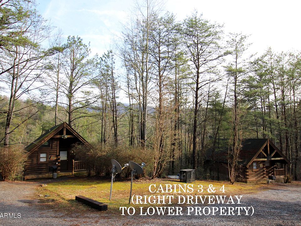 EXCELLENT RENTAL OCCUPANCY & OPPORTUNITY TO EXPAND COMMUNITY! 4 log cabins on 5 acres, all w/ cathedral ceilings, jacuzzis, hot tubs, magnificent mountain views, plus room to build at least 3 other cabins & still maintain privacy. CABIN 1/master & full bath on main, loft w/ 2 queen beds & full bath, recreation room on lower level. CABIN 2/master & full bath on main, loft with jacuzzi & full bath. CABINS 3 & 4/honeymoon great room cabins w/ king beds & heart-shaped jacuzzis, separate bath, washer & dryer. Cabin 4 has ''picnic in the woods'' dining area. Well-maintained, sold ''As Is'' with no repairs.