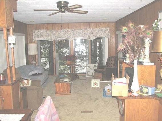 Imagine having a year round home on beautiful Lake George - a 443 acre fully recreational lake! This affordable 3 bedroom, 2 bath manufactured home sits on 125 feet of sand frontage, has it's own private boat landing, a one car detached garage, a couple of storage sheds and even a guest cottage. This home features 3 bedrooms, 2 full baths, a spacious living room, large family room with a pellet stove and a partial basement. Bring the boat and fishing poles!