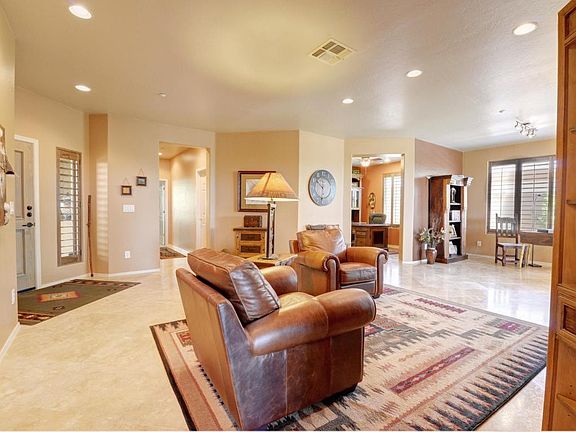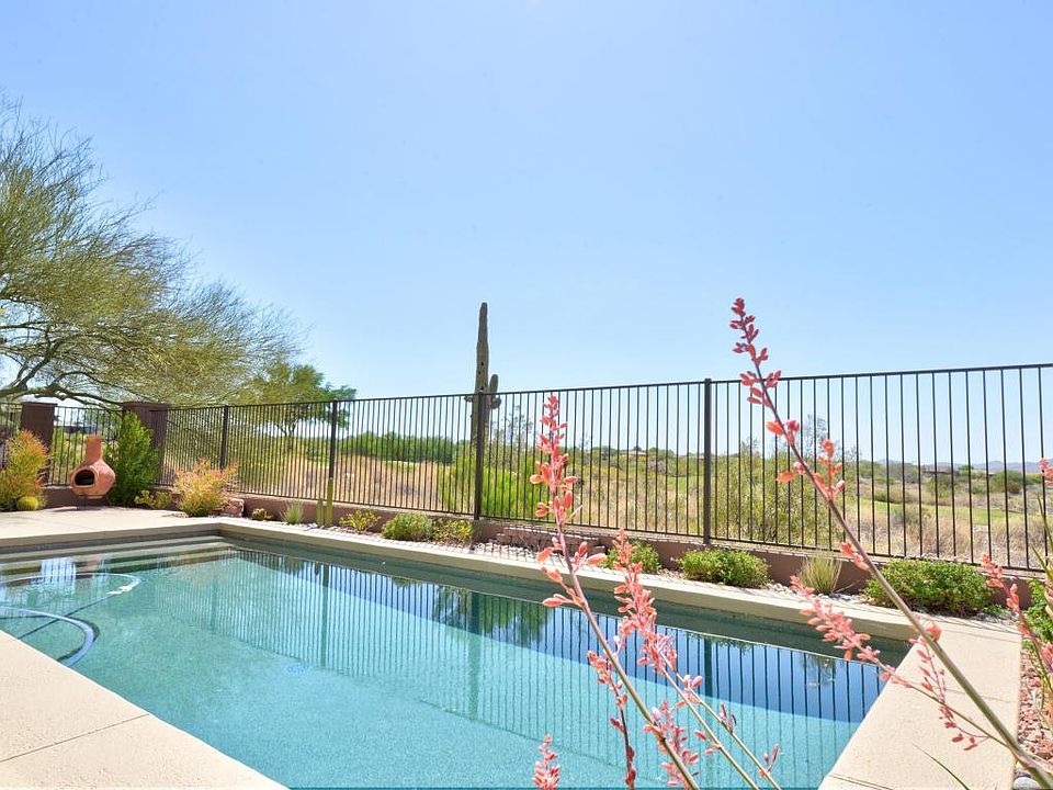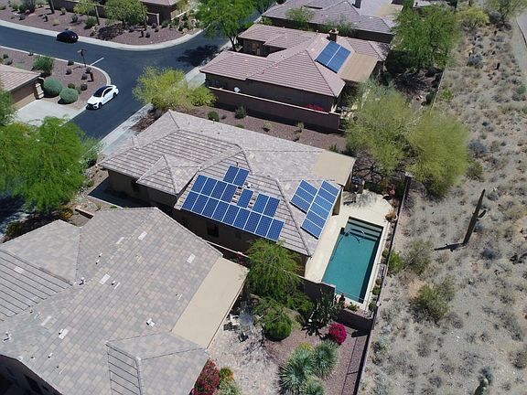 Owner has pampered and added sought after big ticket features in this golf course home with mountain views and pebble tec pool. Owner has PRE-PAID Solar City lease OF about $13K w/aout 15 years remaining and annual electric bills are approximatly $300.00, 2016 full roof replacement and HVAC replacement & drip system replaced, 2015 exterior paint, 2014 water heater. Other desired features: stone travertine floors throughout, stainless appliances, corian w/decorative tiled backsplash, plantation shutters, laundry cabinets & sink, soft water & R/O, garage cabinets & gas BBQ.
