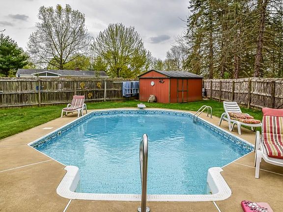 Tons of space in this 4 bedroom 2.5 bath colonial with a wonderful backyard in Jackson! The spacious, fully fenced backyard features an inground pool with a diving board, a shed for all the pool equipment and a deck - amazing area for entertaining! Inside, crack open your cookbook in the applianced eat-in kitchen with newer maple cabinetry, soft close hardware, a center island with pull out drawers and a pantry. Enjoy meals in the casual dinette or host holidays in the formal dining room. Gather in either the front living room or head to the back family room with a gas log fireplace and sliding doors to the deck. Convenient half bath on the main level, too. Upstairs, the master suite offers a walk-in closet and dressing area with a vanity plus a private master bath with a tiled shower. There are 3 additional bedrooms and a full bath. Bedroom 2 has 2 closets and a private vanity. Partially finished lower level includes a paneled rec room, laundry hookup and storage. Up front, relax on your 17x8 screened-in porch! Situated on a quiet cul de sac. Don't miss out!