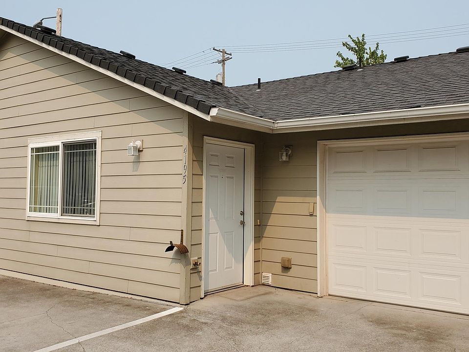 Bright, clean single level duplex with wide hallways which give it a very spacious feel. Forced air-A/C. Both bedrooms have walk in closets. Floors are tile throughout. Wheelchair accessible including walk/roll in shower in master bathroom. Washer/dryer hookups are in the garage. Very small back yard (no grass). Tenant pays all utilities, cable and garbage. This is a no smoking property. Small dog considered. No cats
