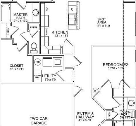 The Dalton is a three bedroom ranch plan with a two car garage. Exterior features include a predominantly brick front with a covered entry and hip roof design, offset with reverse gables for visual depth. Interior features include ceilings that rise to nine feet ceilings through most living areas,...