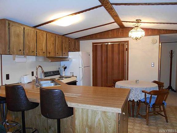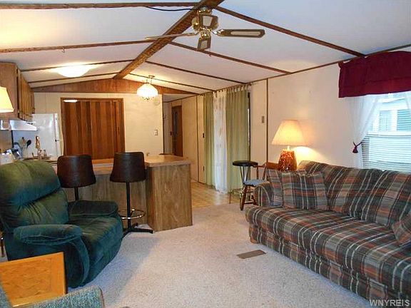 NEW PRICE! NEWER CARPET IN THIS QUAINT 3 BEDROOM, 1-1/2 BATH MOBILE SET UP IN COUNTRY VILLAGE ESTATES. EAT-IN KITCHEN WITH COUNTER BAR. FIRST FLOOR LAUNDRY. THE MASTER BEDROOM OFFERS A HALF BATH. THERE ARE TWO BEDROOMS AND A FULL BATH THE OTHER END OF THE MOBILE HOME. THE BACK DECK FEATURES A SCENIC VIEW OF THE WOODS. ALL APPLIANCES AND FURNITURE STAY FOR YOUR BUYING CONVENIENCE. THE MONTHLY RENT IS $240 AND THE PURCHASE IS SUBJECT TO THE APPLICATION AND APPROVAL OF COUNTRY VILLAGE ESTATES. IDEALLY SITUATED BETWEEN GREAT VALLEY AND SALAMANCA. CALL TODAY TO SEE THIS GRAET DEAL!