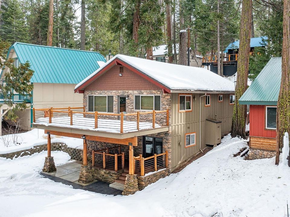 Beautiful cabin conveniently nestled in West Village in Shaver Lake! As you arrive the welcoming front porch and custom rockwork will draw you in! Upon entry you're greeted by the cozy den which leads to a primary bedroom with an updated en-suite. There's a laundry area and large utility closet perfect for storing sleds and all the fun snow or lake gear! Upstairs you have an open concept showcasing a great room with vaulted ceilings and rockwork housing a free standing fireplace. The well appointed kitchen offers granite counters, gas range, built-in microwave, farm sink, nice size breakfast bar and pantry. Off the kitchen there's an eating area which leads out to the large Trex finished deck, perfect for friends and family to gather. Down the hall you have 2 bedrooms, updated bathroom and an additional primary bedroom with an updated en-suite and french doors leading outside. Upgrades include canned lighting, ceiling fans, new microwave, Milgard dual pane windows, Anderson doors, wood flooring and so much more! This home would make a great weekend getaway or AirBnB for additional income. Just steps to all the restaurants, watering holes and shopping. Make your appointment today to view this beauty!