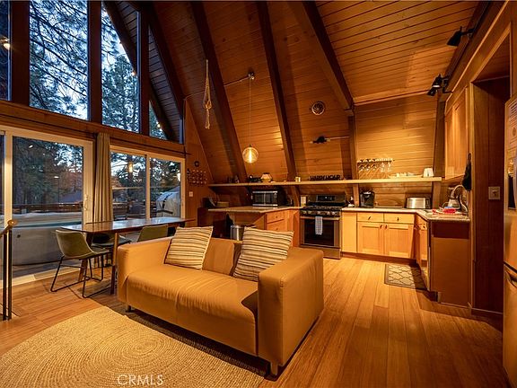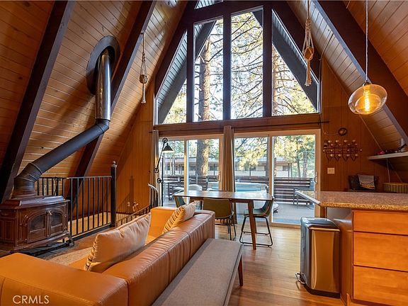 This is a one of a kind. 5-bedroom A-frame mountain cabin in Big Bear Lake! This charming and spacious retreat is nestled is steps away from Snow Summit Ski Resort. With its distinctive A-frame architecture, this cabin exudes a rustic yet modern charm that perfectly complements its natural surroundings. Stepping inside you'll find a warm and inviting living area with vaulted ceilings and expansive windows that allow abundant natural light to fill the space. The 3 story, 2248 sq. ft. cabin provides ample space for family and friends to gather. After a day of skiing or exploring the slopes or hiking trails you can unwind in the spa or outside in oversized backyard area where you can enjoy the fresh mountain air. Relax and sit under the covered seating area enjoying a book. Additionally, the cabin's proximity to the slopes allows for easy access to skiing and snowboarding during the winter and downhill biking in the summer, making it a haven for outdoor enthusiasts.