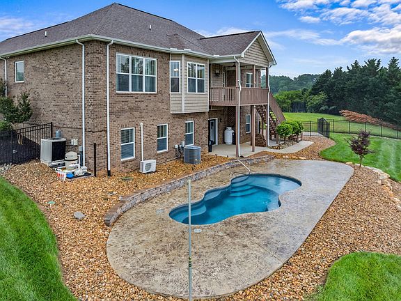 Welcome to one level living in premier Waters Edge Subdivision. This full brick home featuring main level garage, 3 bedrooms, 3 full baths, split bedroom design with all hardwood flooring, granite counters, freshly painted and full appliance pkg. Vaulted ceilings in main living area with gas log fireplace with hearth. Nice breakfast area off kitchen and separate formal dining area. Lower level media room with projection screen for all the ballgames/movies and additional space for sleeping. For the warm sunny days, enjoy the fiberglass in-ground swimming pool and heated for extended enjoyment. Plenty of unfinished basement area for all the extras. Professionally landscaped with sod, irrigation and aluminum fencing. Hurry and close on this one before the 4th of July for firework show from your own back yard.