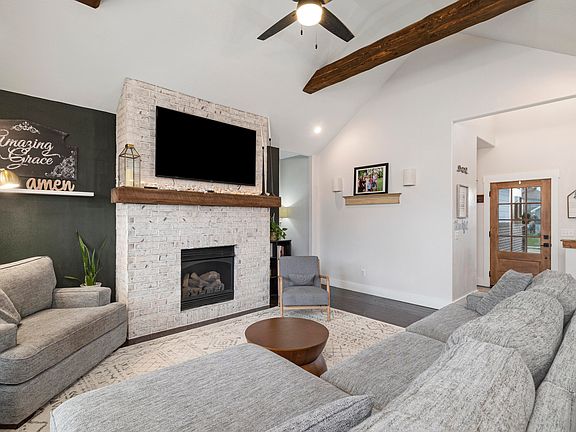 Like new home in Olde World Estates! This stunner has all the little details to make this home stand above the others! The living room features a cathedral ceiling with wood beams, white brick fireplace and an accent wall. In the kitchen you will find custom floor to ceiling grey painted cabinets with natural stained wood accents, two built-in pantries, stainless steel appliances and granite counter tops. The dining area was purposefully extended so that it is large enough for a table that seats 12! A built-in buffet with floating shelves can house all of your extra cooking gadgets. The master suite boasts an exquisite bathroom with soaking tub, walk-in shower, dual sink vanity and large walk-in closet. The bedroom gives a feeling of tranquility with its wood floors, designer accent wall, and custom fireplace! The main floor includes 2 additional bedrooms, both with unique wall treatments, a full bath, a half bath, and a laundry room with a drop zone. Downstairs you will find herringbone luxury vinyl flooring throughout! A large wet bar and impressive second living space with another fireplace (the third fireplace in the house) is the perfect spot for entertaining. The basement has 3 additional generously sized bedrooms, a full bathroom with dual vanities, tons of not pictured storage space, plus a safe room! Outside is an exterior storage room with a window that is perfect for tools, a hobby room, or even an oversized pet suite! The fully fenced back yard has plenty of room for all of the kids' toys and even a spot for the adults to hang by the firepit. The extended covered deck has stairs leading down and is the perfect spot to spend relaxing evenings. With the extra details in this home, it is sure to sell fast. Call for your private tour today!
