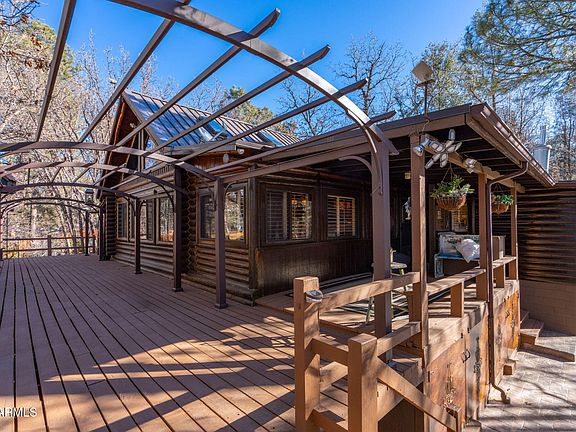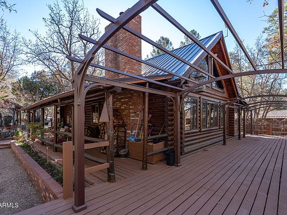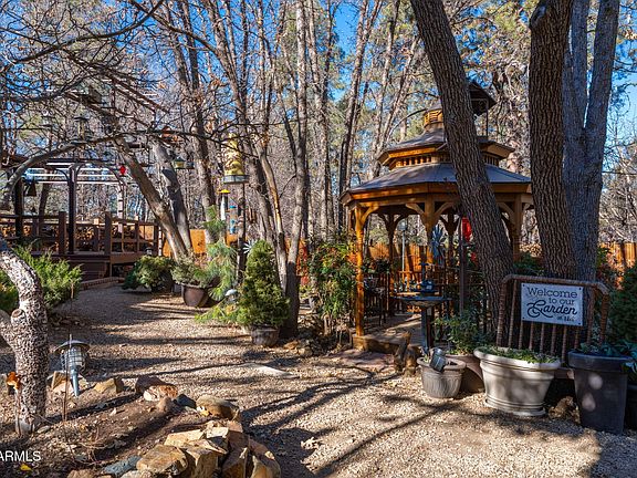 Own a piece of Prescott history! Built by the namesake of Coburn Dr - prolific Western author Walt Coburn - this fantastic storybook property nestled amongst the pines will capture your imagination. The 2 bedroom, 2 bathroom, 1,843 sq ft home features impressive log beamed ceiling, cherry hardwood flooring, granite countertops, plantation shutters, and 2 cozy fireplaces. The exterior boasts 3 gazebos, 2 pergolas, numerous walkways, and innumerable small touches that add to the wonder of the property. Additional features include a large workshop over the 2 car detached garage, 3 stall horse barn, oversized Bunger RV garage with workspace, fully fenced perimeter, 2500 gallon water tank, and backup generator. Please see documents tab for additional information.