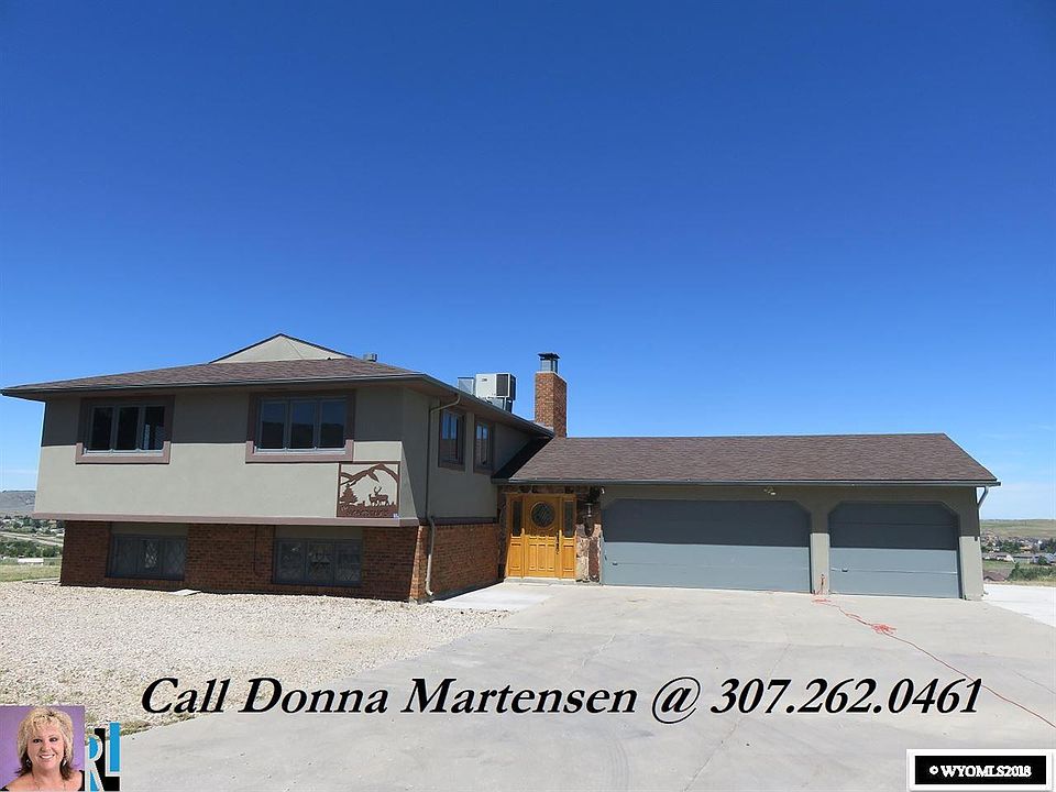 CALL DONNA MARTENSEN FOR MORE INFORMATION. INCREDIBLE MOUNTAIN & RIVER VIEWS! ALMOST 5 ACRES IN TOWN, OFF OF CY AVENUE. SEVERAL UPGRADES INCLUDING NEWER STUCCO EXTERIOR, HARDWOOD FLOORING ON THE MAIN LEVEL. GRANITE COUNTERS IN KITCHEN AND BATHS. LARGE OPEN FLOOR PLAN ON THIS SIDE ENTRY SPLIT LEVEL. LOWER LEVEL IS A WALK OUT. AN ATTACHED OVER SIZED 3 CAR GARAGE WITH TONS OF EXTRA PARKING FOR RV'S AND TOYS!