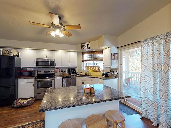 Accepted Offer with Contingencies. Nestled among old growth fir w/ a hilltop view! This 3 bedroom home offers an island kitchen w/ granite countertops, soft-close cabinets/drawers, & large windows that fill the living room w/ natural light, & a pellet stove. The master has a lot of closet storage, dual sinks, soaking tub, & separate shower. There's a large wrap around partially covered deck to enjoy the view & overlook the land. The 18x24 detached workshop w/ carport is great for your projects or your toys. Fruit trees & room for a garden.