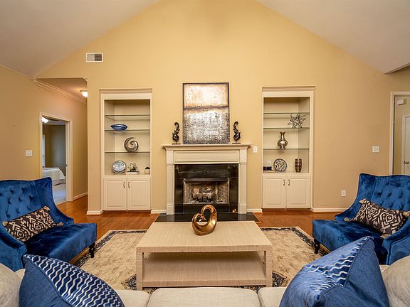 Main level living conveniently located in the Caldwell Crossings Subdivision in Hoover. The spacious open living area with vaulted ceiling, fireplace and built-in bookshelves opens to a formal dining room and provides plenty of space for relaxing or entertaining. The large sun filled kitchen offers an eat-in area, large center island with seating and stainless steel appliances. On the rear of the home is a spacious master suite with the master bath boasting 2 vanities, garden tub, separate tile shower and large walk in closet. Located near the foyer you will find the 2nd & 3rd bedrooms that share a hall full bath with tub/shower combo and linen closet in the hallway. All of the large front windows are covered in plantation shutters and 2 inch blinds. The walk up unfinished bonus room over the garage offers room for tons of storage. A screened in, and covered patio allows for year round entertaining. Situated on a level lot, close to interstates, shopping and schools. New roof & carpet.