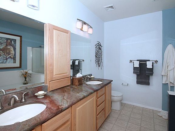 Premium location for ultimate privacy and Mtn. views sited on the river walk, minutes from shopping, bus stops, hospital & schools. Light, bright & open floor-plan provides an eat-in kitchen w/GE Profile gas cooking & convection oven, plenty of prep & storage area plus a breakfest bar. The large great room enjoys spectacular views of the Catalina Mtns w/access to the covered patio ramada, hot tub and seperate fenced blue pebble tec pool w/waterfall. The spacious master suite enjoys Mtn vista views, a phenomenal true custom closet & spa like bath featuring top of the line Granite counters, jacuzzi tub & serperate shower. 2 add'l bedrooms, 1 currently set-up as office w/double french doors and 1 located off the great room and is perfect for guests. Numerous upgrades throughout.