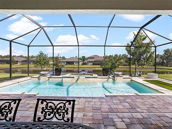 ABSOLUTELY STUNNING HOME! Only 2 years old, 8 YEARS of WARRANTY still remains. You will love the warmth and neutral tones immediately upon entering the EXPANSIVE FOYER. This home had almost $200,000 of upgrades and enhancements while in the building stage, and another $100K post-occupancy. Kitchen boasts CAMBRIA BRITTANICCA QUARTZ, upgraded LIGHT cabinetry with CUSTOM PANELED RANGE HOOD, MULTIPLE STORAGE DRAWERS, PLANTATION SHUTTERS, Center Island has 5 DEEP additional cupboards on opposite side. GE CAFE DOUBLE OVEN, separate CONVECTION MICRO WAVE, as well as CAFE PROFESSIONAL GAS COOKTOP. LVP flooring on main surfaces, TILE in baths. Walk-In Pantry, HUGE, CUSTOM MASTER CLOSET with GLASS doors and AMPLE room for all your prized possessionsl! Office, Playroom, Nursery, or possible 4th BEDROOM with the addition of a closet, or even an armoire. Guest bedrooms are spacious, as well as having their own custom closet design. THREE FULL BATHS - all with QUARTZ counter tops, including one ADJACENT to the GORGEOUS, SALT WATER POOL WITH LED LIGHTING AND WATER BOWLS, that look out onto the pond. Be sure to check out the SPACIOUS EXTERIOR LIVING SPACE in this home. OUTDOOR SPEAKERS AND WIRED for TV, as well as an additional NATURAL GAS PIPE for a grill or future outdoor kitchen. CENTRAL VACUUM system, GLASS BREAKAGE SENSORS, GAS FIREPLACE and main living area surround sound speakers, as well as DEDICATED AUDIO/AV CLOSET to hide all the unsightly wires. MASTER BED AND BATH is certainly a relaxing and tranquil retreat. LARGE WALK IN SHOWER WITH Rain Head, TWO SEPARATE HIS and HER vanities, and a KOHLER FREE-STANDING TUB. Main sinks and commodes are KOHLER, main faucets are MOEN. The Laundry Room is so LARGE it holds a piece of FURNITURE, in addition to the extended STORAGE CABINETRY on the opposite wall. THE THREE CAR GARAGE floor has been Professionally EPOXIED, and all PAVERS on driveway, as well as Lanai, have been SEALED. This home has CONDUITS in place and is GENERATOR-READY (but not yet wired) along with a TANKLESS GAS WATER HEATER, ENHANCED LANDSCAPING as well as CUSTOM LANDSCAPE LIGHTING. NO WAITING for items on back-order! HERE, it's ALL WAITING FOR YOU!