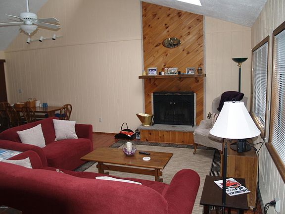 Cute open floor plan home features 2 bedrooms, fireplace and screened in porch on a cul-de-sac. Freshly painted has cathedral ceiling and loft. Located in a recreational community with lakes, beaches, pools, tennis, golf, ski hill, clubhouse and more.