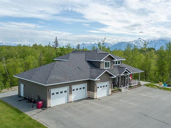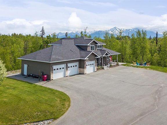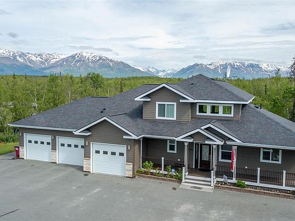 This home is amazing There are big views out almost every window. When you pull up to this home there is such an impressive feeling. The natural landscape that outlines the driveway of the home gives it that lost in Alaska feel. The home itself has 4 beds, 3.5 baths, 3 car garage, and a mother in law apartment or air B&B.
