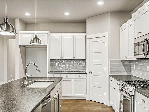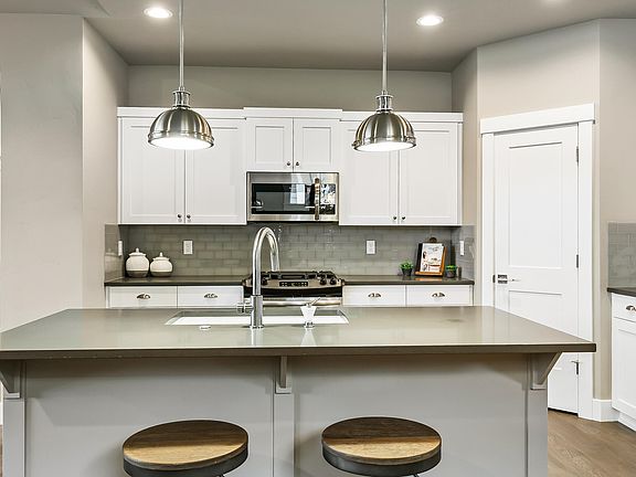 Welcome to your dream home in the Prairie Crossing community! This stunning new construction townhome offers the perfect blend of luxury and efficiency, with 3 bedrooms, 2 1/2 baths, and a host of high-end features. From the solid surface counters and soft-closed drawers to the tile shower and heated floors in the primary bathroom, every detail has been carefully crafted to inspire a sense of luxury. Plus, with earth advantage certification, AC, tankless water heater, and engineered hardwood floors, you can enjoy both comfort and sustainability. Say hello to your new home, where quality meets elegance in every corner. This unit has peak-a-boo mountain views and the Missouri interior package.