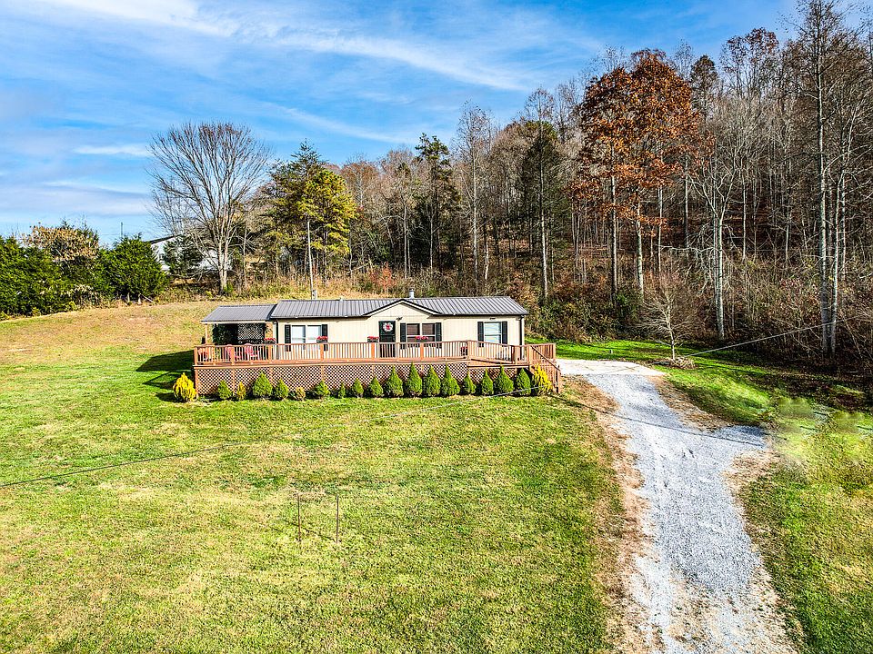 Multiple offer highest best submit by 4pm 2/25 bdr, 2 ba home is located on the GreeneCounty/Hawkins County line with a Greeneville address. Just shy of 1200SF of living space this property offers lots of unique upgrades. Newly painted inside and out, the main living area impresses with its custom woodwork on the featured propane fireplace adding warmth to the all around country cabin feel. Completely updated kitchen/dining with beautiful warm gray cabinets, stainless steel appliances and a modern stainless backsplash and exhaust hood for a stylish focal point. Lg seperate laundry /pantry area to accomodate full size w/d. Large master and walk-in closet, with an oversized master bathroom that transforms you to a ''cabin in the woods'' with its wood shiplap walls. A solid wood built-in vanity with vessel sink, stand alone shower and roman style tub. His and her medicine cabinets with one cleverly disguised behind a mirror/door. The second ''Jack and Jill'' bathroom connects bdr 2 and 3 is all new with a space-saving corner shower. The carpeted front bedroom/office is accessible through the barn door from the living room. The 2nd bedroom includes a spacious double door wall length closet. Two inch window blinds and ceiling fans throughout. Majority of flooring is laminate with tiled bathrooms. Package central A/C and heat unit is approximately 6 years old, seller has recently installed a brand new Well and water filtration system. Septic tank recently pumped and brand new moisture barrier underneath. HVAC has warranty until 9/25. Sitting on almost 4 acres, property would be great for mini farm enthusiasts, chickens, goats and minis! Over an acre is lightly sloped and usable, remaining acreage is hillside and treed for great privacy. Enjoy the beautiful sunset mountain views and deer watching from your 40ft wrap around front deck, partially enclosed covered side patio perfect for entertaining. Handicap access ramp. Property truly is turnkey. High speed inter